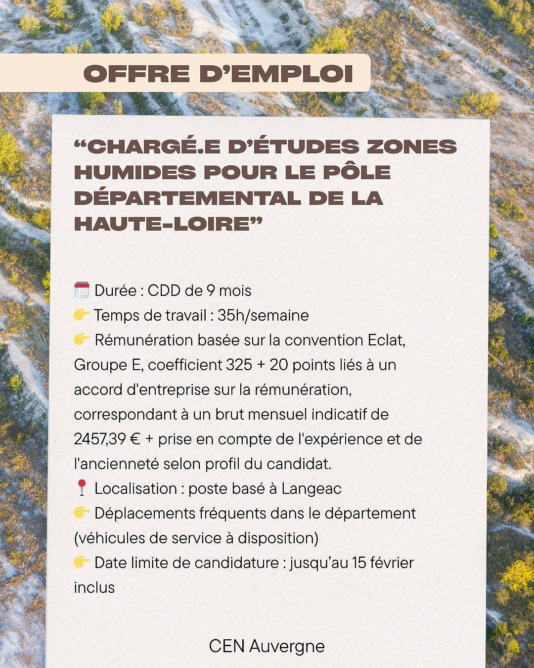Recrutement : chargé·e d’études zones humides pour le pôle Haute-Loire