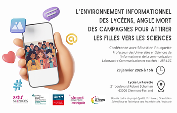Destinée aux professionnels de l’industrie, de l’orientation, de l'éductaion et de la formation, cette conférence offre des clés pour repenser les actions en faveur des filles dans les sciences : informer avant de convaincre, proposer des modèles crédibles, et tenir compte des usages médiatiques réels des adolescents.