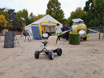 Démonstration d'une machine de recyclage des déchets illustrée et construite par les enfants.