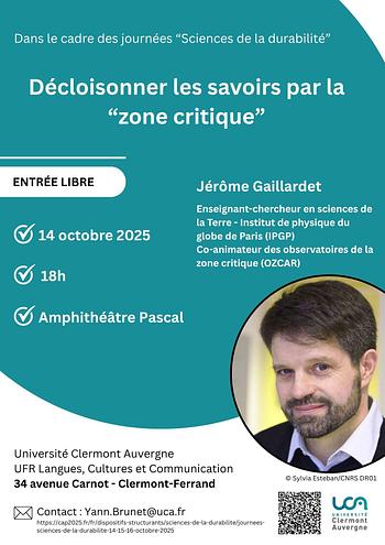 Le Pôle Sciences de la durabilité a le plaisir d'accueillir, dans le cadre des journées qu'il organise du 14 au 16 octobre, le géochimiste Jérôme Gaillardet pour nous parler de la "zone critique".