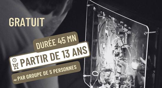 Découvertes des sciences-physiques à travers des énigmes et des expériences, présentées par des lycéens de série S, permettant aux enfants de trouver les codes d’ouverture de boites, puis le code final permettant de sortir symboliquement de la salle en temps imposé.
