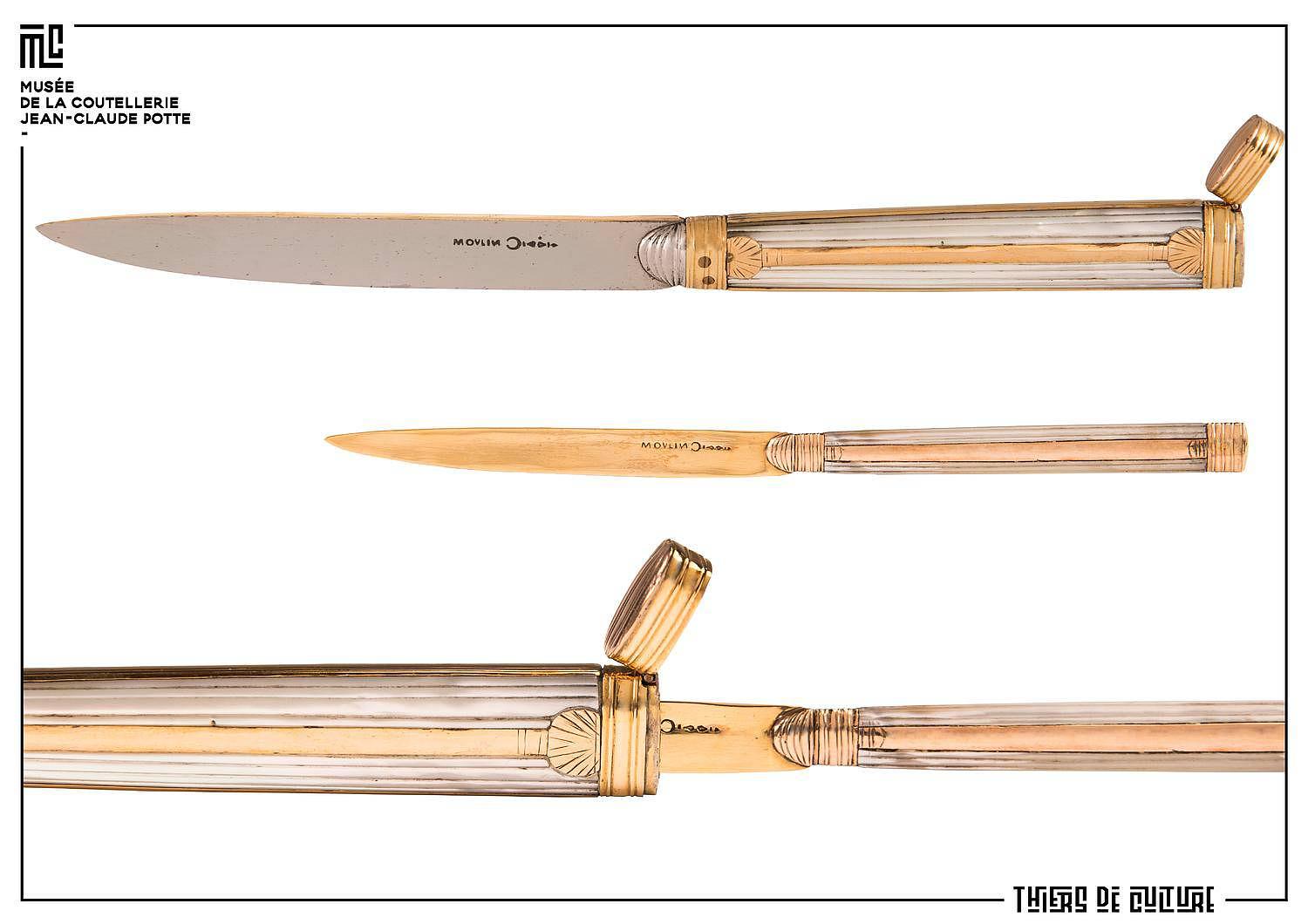 À travers près de 700 objets, le musée révèle la richesse et l’évolution de cet artisanat : diversité des formes, transformations liées aux usages, aux techniques et aux matériaux. Les collections, allant du XVIᵉ siècle à aujourd’hui, rassemblent des pièces issues de grands centres couteliers français et étrangers. Elles invitent à suivre l’histoire du couteau, des arts de la table aux créations contemporaines, et à admirer des réalisations d’exception en nacre, ivoire ou or.